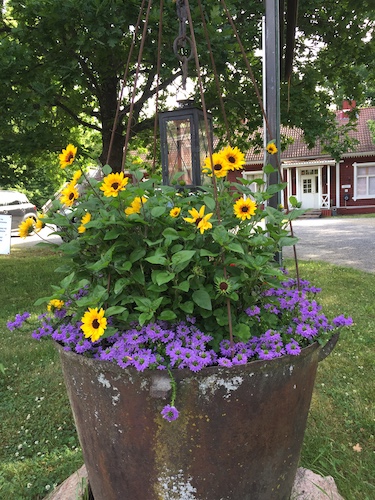 Ulkona saimme lisää tehtäviä. Toisen tehtävänannon kirjoitin istahtamalla penkille lähelle kukkia ja erilaisia taimia istuttavia henkilöitä ja sainkin tietoa meneillään olevasta istutustyöstä (retiisin ja keltaisten zinnioiden taimia). Minulle myös näytettiin kyltin päälle ripustettu pieni hyönteishotelli. Toukokuu ja kesäkuun alkupäivät ovat tänä vuonna vaikuttaneet säätilaltaan kylmemmiltä kuin normaalisti tähän vuodenaikaan. Vaikka sää ei kävelyn aikana ollut mitenkään erityisen huono ja välillä paistoi aurinko, oli Lapinlahden Lähteellä kuitenkin varsin kylmää. Olin myös unohtanut ottaa villatakkini mukaan, koska olin kai kuvitellut säätä lämpimämmäksi kuin se olikaan. Saimme tehtävän kirjoittaa aiheesta “Pesä”. Kuvittelin, että rakennuksen toisella puolella olevalla kalliolla kasvavan männyn rungossa olevassa kolossa voisi olla oravan pesä. Sen jälkeen, kun olin jonkin aikaa kirjoitellut vilkuillen ylöspäin kohti koloa puun rungossa lähellä kohtaa, jossa sen oksat haarautuivat, olivat käteni jäätävän kylmät.