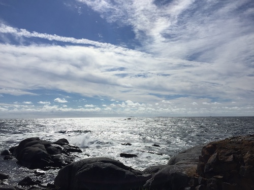Viikonloppuna teimme kävelyn niemelle, jossa on kalliolla muistomerkki, jossa on risti ja tähti. Majakkakierroksella olimme saaneet tietää, että se on pystytetty muistoksi sen lähellä tapahtuneelle haaksirikolle. Osa tuossa aluksessa olleista pelastui mutta osa valitettavasti ei. Oppaamme kertoi, että pelastustoimet olivat vaikeita kovan merenkäynnin takia. Kävelimme rantakallioilla tuossa osassa saarta. Vaikka oli aurinkoista niemellä tuuli niin kovasti, että omaa ääntään oli vaikeaa kuulla. Kallioitten suojassa onneksi löytyi hieman suojaisempia paikkoja, josta käsin ihailin merta ja rantakallioita.